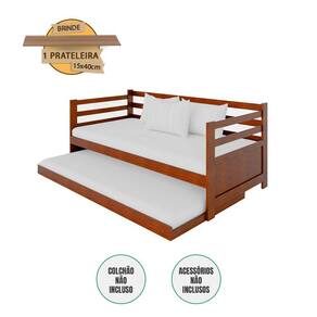 AS IMAGENS SÃO MERAMENTE ILUSTRATIVAS E PODEM SOFRER VARIAÇÕES DE COR E PEQUENOS DETALHES DE ACORDO COM O SEU MONITOR, ILUMINAÇÃO DO AMBIENTE E ATÉ MESMO A SUA PERCEPÇÃO VISUAL.Sofà Cama Madeira Vintage Enjoy Castanho com Prateleira RÃstica