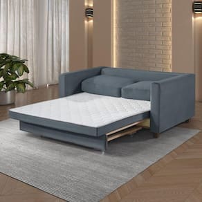 Disponível no modelo casal e solteiro, o sofá cama Marcelle atende a todos os perfis de usuário. Os Pés de madeira dão a sustentação e confiança necessária, além de almofadas soltas para facilitar no seu manuseio.