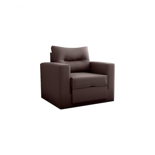 O Sofá Cama Marissol 1 lugar é uma poltrona que se transforma em cama de Solteiro, basta retirar a almofada e puxar o assento para frente, abrir os pés dobráveis e utilizar para descanso ou para uma ótima noite de sono. Este Sofá é produzido com madeira de reflorestamento e para dar mais conforto são usadas espumas de qualidade além de almofadas mista de fibra siliconada e flocos de espuma.