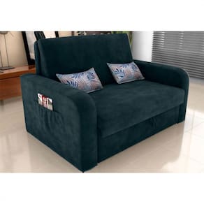 Modelo: Matrix - Fabricado em madeira Eucalipto de reflorestamento - Revestimento em Veludo - Reclinável em 3 posições: sentado, leitura e descanso - 4 Pés palito em madeira castanho com 13 cm de altura - Assento e encosto com densidade D-26 para maior conforto - Braços com densidade D-20 - Percinta em cinta elástica - Almofadas do assento e do encosto fixas - Interior em fibra de silicone e molas - Ideal para 3 pessoas no modo sofá e 2 pessoas no modo sofá-cama - Suporta até 100kg por assento - Acompanha 2 almofadas
