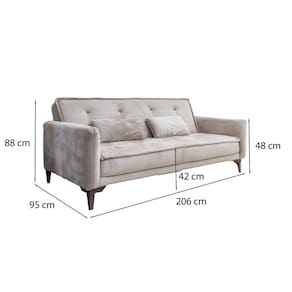 Sofá Cama Grécia acomoda confortavelmente 3 pessoas sentadas e 2 pessoas deitadas, também esse produto oferece 3 posições diferentes de regulagem para o encosto quando utilizado como sofá. Em tecido de Suede proporciona extremo conforto e de fácil limpeza. Produto Montado: Sim Acompanha Almofadas extras: 02 Almofada do assento: Fixa Almofada do encosto: Fixa Altura do assento até o chão: 42.0000 Altura do Encosto: 52 cm Altura dos Pés: 15 cm Altura Máxima dos Pés: 15.0000 Ambiente Principal: Sala de Estar codigo_ean: 7900288123695 Complexidade da Montagem: Baixa: pode ser montado por uma pessoa sozinha Cor: Bege Cor do Produto: Bege Densidade do Assento: D-28 Densidade do Encosto: D-28 Enchimento do Assento: Espuma Enchimento do Encosto: Espuma Estilo de Braço: Braços Quadrados Firmeza do Assento: Macio Gramatura do Tecido: 240 g/m² Informações Complementares: Percintas pneus, pés madeira Itens Inclusos: 1 Sofá Cama, Manual de Montagem e Kit Ferragens Largura Total: 206 cm Linha ou Coleção: Linha Manual de Montagem e Instalação: https://product-hub-prd.madeiramadeira.com.br/290521330/documents/7dbce064-f9fc-44c5-a28f-1cde163ef1a92860086375317448285621762.pdf Marca: Nabas Estofados Material da Corrediça do Sofá: Aço/Metal Material dos Pés: Eucalipto Medida como Cama (A x L x P): 88x95x206 Modelo: Sofanete Necessita Montagem: Sim Origem do Produto: Nacional Peso: 47 kg Peso Suportado por m²: 150 kg/m² Pet Friendly: Não Possui Baú: Não Possui Mola: Sim Possui Percintas Elásticas: Sim Possui Pés: 05 Possui Rodízio: Não Quantidade de Itens: 1 Reclinável: Sim Recomendações de Uso, Manutenção e Limpeza: Não limpar com álcool ou qualquer outro produto químico. Utilizar somente pano seco. Revestimento do Assento: Suede Revestimento do Encosto: Espuma D-28 Sistema de Montagem: Rosquear os pés Tecido Predominante: Suede Tipo de Assento: Fixo Tipo de Encosto: Regulável Tipo de Mola: Não Possui Tipo de Sofá: Sofá Cama Marca: Nabas Estofados