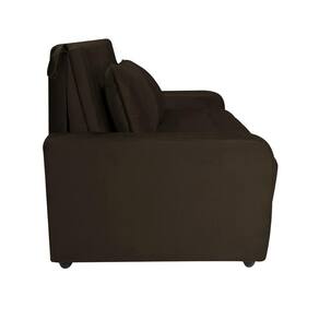 Produto: Sofá Cama Amora | Conteúdo da Embalagem: Sofá Cama | Nome do Simples no Fornecedor: Sofá Cama para Sala de Estar Amora New Suede - Terracota | Altura do Produto (cm): 90 | Largura do Produto (cm): 138 | Comprimento do Produto (cm): 97 | Altura do Produto com embalagem (cm): 87 | Largura do Produto com embalagem (cm): 140 | Comprimento do Produto com embalagem (cm): 99 | Descrição do Tamanho: 90x138x97 (cm) | Peso do Produto com embalagem (kg): 51.8 | Peso do Produto (kg): 50.8 | Revestimento: Suede | Peso Suportado: 100 kg | Medidas do Encosto: 47x110x16 cm | Medida do Assento: 45x110x66 cm | Medidas das Braças: 50x14x87 cm | Material do Enchimento Encosto: Espuma | Material do Enchimento do Assento: Espuma | Material do Enchimento das Braças: Espuma | Medidas Aberto: 45x138x186 cm | Acompanha Almofada: Sim, 2 | Material: Madeira Maciça | Material para Filtro: Madeira | Instruções/Cuidados: Não deixe o móvel exposto ao sol. Evite contato com líquidos. | Estado de Origem: PR | Garantia do Fabricante: 3 meses contra defeitos de fabricação. Não cobrimos alterações e/ou montagem errada. | Garantia em Meses: 3 | Fabricado Por: Matrix | Vendido Por: Zanin | Cômodo Indicado: Sala de Estar | Possui Pés: Sim | Material dos Pés: Polipropileno | Volumes: 1 | Material da Estrutura: Madeira | Tonalidade: Multicolorido | Tipo de Produto: Sofá | Largura Produto Com Embalagem (cm): 140 Cor: Marrom