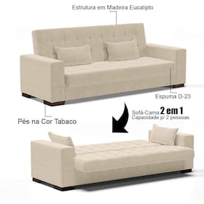 Sofá Cama para Sala de Estar Lisboa é um estofado moderno e elegante que irá deixar sua sala de estar com um visual muito mais bonito. O sofá pode ser em duas posições, fechado como sofá normal ou aberto como um sofá cama com assento retrátil, com espaço de 170cm de largura para leito. Legal, né? Possui ainda estrutura em D-23 com assento e persintas elásticas, o que garante maior durabilidade e conforto para você e toda a família. Simplesmente irresistível!