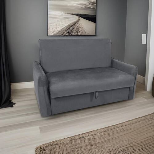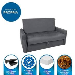 Sofá Cama para Sala de Estar Zaia com Baú Veludo Chumbo