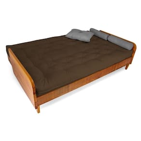 Material e estrutura: O colchão futon casal é fabricado em tecido de alta qualidade em Acquablock, seu enchimento é de mantas de algodão natural, manta fibra siliconada estruturado por espuma ortopédica D28. Possui amarras nas extremidades. A estrutura é produzida em madeira nobre grápia com pintura na cor natural.