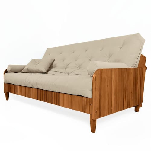 Sofá 4 Lugares Futon Paris Ripado de Madeira Maciça