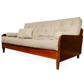 Sofá Cama Paris II Sarja em Madeira Maciça Cor Imbuia - Bege Claro