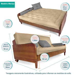 Versátil: Funciona como sofá, cama ou espreguiçadeira Conforto: Enchimento de algodão natural e espuma ortopédica Indicado para uso interno Montagem: Montagem não inclusa; manual de instruções acompanha o produto