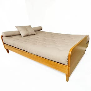 Peso do Produto:40 kgPeso Suportado: 400 kgMaterial e Estrutura:Colchão futon casal em tecido de alta qualidadeEnchimento de mantas de algodão natural e manta de fibra siliconadaEstrutura de espuma ortopédica D28Amarras nas extremidadesEstrutura em Madeira Maciça