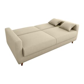 Acompanha duas almofadas decorativas de 35x35 cm que agregam charme e conforto extra ao ambiente. Ideal para salas, escritórios ou quartos de hóspedes, acomoda até 3 pessoas como sofá e 2 como cama.
