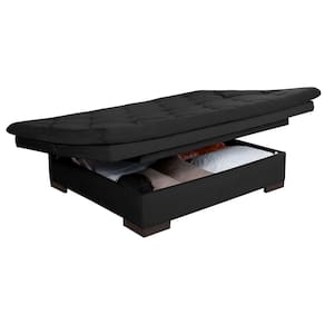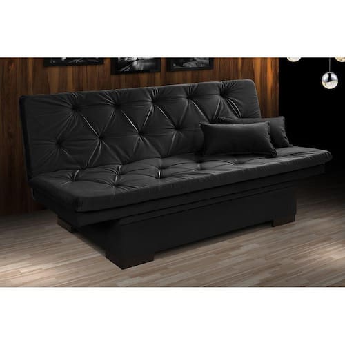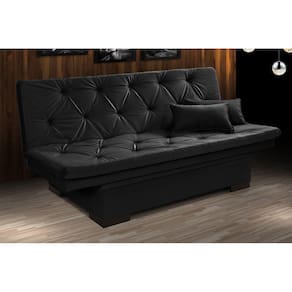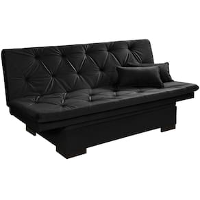 Sofá Cama Reclinável Com Baú Veludo Liso Essencial Multiuso - Preto