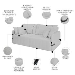 Este Sofá Cama Retrátil 220cm Essence D05 Linho Cinza/Sintético Preto, da Mpozenato é a combinação perfeita de funcionalidade e elegância.
