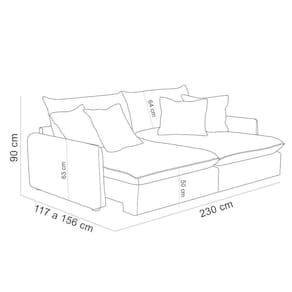 Uso versátil, aproveite como sofá-cama com o assento totalmente aberto e sem as almofadas do encosto.