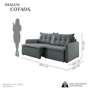 Buscando conforto, qualidade e praticidade você encontra no Sofá cama retrátil e reclinável Flórida, um produto pensado para juntar essas 3 qualidades em um só. Com tecido em linho para agregar valor e beleza ao sofá, produzido com material de qualidade para o maior conforto e durabilidade prevenindo deformações. O assento é retrátil que permite você utilizar o sofá com as pernas esticadas e ter todo o conforto que ele possa te proporcionar. Além disso, sua estrutura é composta por madeira 100% reflorestada, com processo de secagem adequado. O produto vai deixar seu ambiente muito mais bonito e elegante, a peça para elevar sua sala a outro nível. Produto Montado: Não Acompanha Almofadas extras: Não Almofada do assento: Fixa Almofada do encosto: Removível Altura do assento até o chão: 45.0000 Altura do Encosto: 105 cm Ambiente Principal: Sala de Estar codigo_ean: 7909903967256 Cor: Cinza Cor do Produto: Cinza Densidade do Assento: D-28 Enchimento do Assento: Hyper Soft Estilo de Braço: Braços Quadrados Firmeza do Assento: Firme Itens Inclusos: 1 sofá de 2 módulos Material dos Pés: Madeira Necessita Montagem: Não Peso: 86 kg Pet Friendly: Não Possui Percintas Elásticas: Sim Possui Pés: 08 Possui Rodízio: Sim Profundidade Quando Estendido: 150 cm Recomendações de Uso, Manutenção e Limpeza: Limpar com pano levemente umedecido, não utilizar solventes nem produtos de limpeza. Rodízio com Trava: Não Suporta Até (kg): 120 kg Tecido Predominante: Linho Tipo de Encosto: Regulável