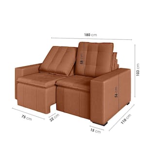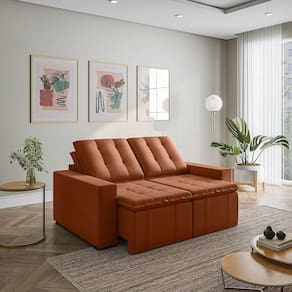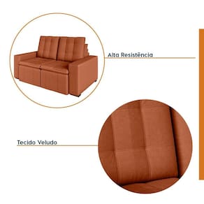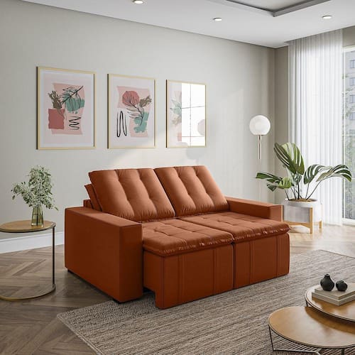Sofá Cama Retrátil e Reclinável 3 Lugares 180cm em Veludo com Molas e Braço Reto Palmeira Cabecasa M Terracota - Laranja