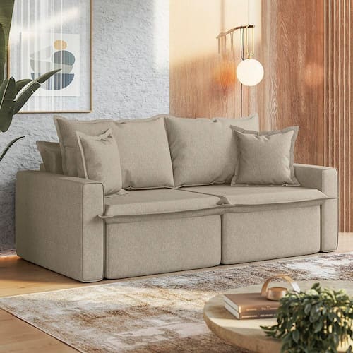 O Sofá León é uma escolha versátil para quem busca conforto e praticidade em um só produto. Seus braços de 15 cm equilibram estética e funcionalidade, enquanto os rodízios garantem mobilidade para diferentes usos. O estofamento é estruturado em Madeira Maciça com percintas elásticas e molas espirais, proporcionando maior resistência. Com almofadas soltas e função cama, adapta-se a múltiplas necessidades, além de oferecer um toque leve e elegante para ambientes contemporâneos. Produto Montado: Não Acompanha Almofadas extras: 02 Almofada do assento: Fixa Almofada do encosto: Removível Altura do assento até o chão: 47.0000 Altura do Encosto: 58 cm Altura dos Pés: 3 cm Altura Máxima dos Pés: 3.0000 Ambiente Principal: Sala de Estar Bipartida: Sim codigo_ean: 7900288217660 Cor: Linho Bege Médio Cor do Produto: Linho Bege Médio Densidade do Assento: D-28 Enchimento do Assento: Espuma Estilo de Braço: Braços Quadrados Firmeza do Assento: Médio Informações Complementares: Estrutura em Madeira Maciça e MDF. Assento com espuma D-28, Percintas elásticas e molas espirais. Braços com espuma D-26. Encosto e almofadas em Fibra Siliconada. Percintas elástica também no encosto. Rodízios em silicone. Itens Inclusos: 1 Sofá e 2 Almofadas Largura do Braço: 15 cm Linha ou Coleção: León Marca: Espresso Móveis Material dos Pés: Madeira Maciça Necessita Montagem: Não Origem do Produto: Nacional Peso: 46 kg Pet Friendly: Não Possui Baú: Não Possui Mola: Sim Possui Percintas Elásticas: Sim Possui Pés: 04 Possui Rodízio: Sim Profundidade Quando Estendido: 140 cm Profundidade quando extendido: 140.0000 Quantidade de Estágios do Encosto: 3 Recomendações de Uso, Manutenção e Limpeza: Para limpeza utilizar somente pano limpo e macio, ligeiramente umedecido em água (apenas o bastante para remover a poeira), seguido de um pano seco. Rodízio com Trava: Não Suporta Até (kg): 300 kg Tecido Predominante: Linho Tipo de Encosto: Regulável Tipo de Mola: Molas Espirais Tipo de Sofá: Sofá Cama