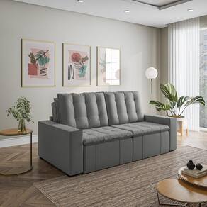 O Sofá Cama Palmeira MadeiraMadeira é a solução perfeita para quem tem pouco espaço disponível. Com ele você poderá acomodar suas visitas com conforto e praticidade. Produzido em madeira maciça de eucalipto, suporta até 400kg. Depois nos conte como foi a experiência de compra e como ficou seu ambiente nos comentários! Acompanha Almofadas extras: Não Almofada do assento: Fixa Almofada do encosto: Removível Altura do assento até o chão: 48 Altura do Encosto: 58 Altura dos Pés: 3 Ambiente Principal: Sala de Estar Complexidade da Montagem: Baixa: pode ser montado por uma pessoa sozinha Cor: Cinza Cor do Produto: Cinza Densidade do Assento: D-23 Densidade do Encosto: Camadas de Densidades Diferentes Enchimento do Assento: Espuma Enchimento do Encosto: Fibra Siliconada Estilo de Braço: Braços Quadrados Firmeza do Assento: Médio Informações Complementares: Densidade Braço D19. Enchimento do encosto: fibra siliconada com flocos de espuma envolvidas com manta siliconada. Itens Inclusos: Sofá, 8 pés e Manual de Montagem Linha ou Coleção: Palmeira Manual de Montagem e Instalação: https://product-hub-prd.madeiramadeira.com.br/877875/documents/8a915833-2550-4f9a-b63b-6e973d39ed11nualSofCamaPalmeiraSlimalt.pdf Material dos Pés: Polimero Necessita Montagem: Sim Nível de Conforto: Macio Origem do Produto: Nacional Peso: 89 Pet Friendly: Não Possui Entrada USB: Não Possui Percintas Elásticas: Sim Possui Pés: 08 Possui Rodízio: Sim Profundidade Quando Estendido: 148 Recomendações de Uso, Manutenção e Limpeza: Evitar exposição direta à luz solar, limpar com escova macia e aspirar o pó semanalmente, não utilizar produtos químicos, removedores, alvejantes, etc. Evite exercer pressão excessiva sobre determinada partes do estofado, não utilizar para limpeza equipamentos a vapor de água. Resistente à Chuva: Não Revestimento do Braço: Veludo Rodízio com Trava: Não Sistema de Montagem: Parafusos e Engates Suporta Até (kg): 200 Tecido Predominante: Veludo Tipo de Encosto: Regulável Tipo de Mola: Molas Bonnel Ean: 7909903474747