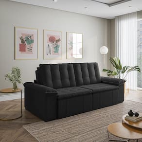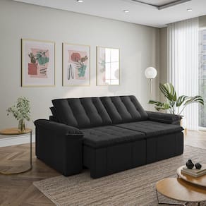 Sofá Cama Retrátil e Reclinável 3 Lugares 260cm Veludo Palmeira Cabecasa MadeiraMadeira Preto