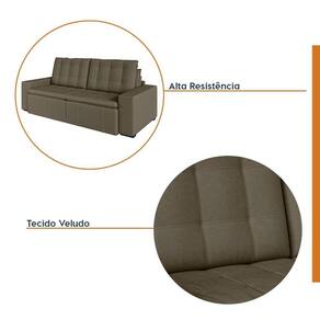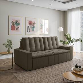 O Sofá Cama Palmeira MadeiraMadeira é a solução perfeita para quem tem pouco espaço disponível. Com ele você poderá acomodar suas visitas com conforto e praticidade. Produzido em madeira maciça de eucalipto, suporta até 400kg. Depois nos conte como foi a experiência de compra e como ficou seu ambiente nos comentários! Acompanha Almofadas extras: Não Almofada do assento: Fixa Almofada do encosto: Removível Altura do assento até o chão: 48 Altura do Encosto: 58 Altura dos Pés: 3 Ambiente Principal: Sala de Estar Complexidade da Montagem: Baixa: pode ser montado por uma pessoa sozinha Cor: Grafite Cor do Produto: Grafite Densidade do Assento: D-23 Densidade do Encosto: Camadas de Densidades Diferentes Enchimento do Assento: Espuma Enchimento do Encosto: Fibra Siliconada Estilo de Braço: Braços Quadrados Firmeza do Assento: Médio Informações Complementares: Densidade Braço D19. Enchimento do encosto: fibra siliconada com flocos de espuma envolvidas com manta siliconada. Itens Inclusos: Sofá, 8 pés e Manual de Montagem Linha ou Coleção: Palmeira Manual de Montagem e Instalação: https://product-hub-prd.madeiramadeira.com.br/877887/documents/eecf799a-f959-4026-8704-c4cc5e54a87f783ManualSofPalmeira240alt.pdf Material dos Pés: Polimero Necessita Montagem: Sim Nível de Conforto: Macio Origem do Produto: Nacional Peso: 92 Pet Friendly: Não Possui Entrada USB: Não Possui Percintas Elásticas: Sim Possui Pés: 08 Possui Rodízio: Sim Profundidade Quando Estendido: 148 Recomendações de Uso, Manutenção e Limpeza: Evitar exposição direta à luz solar, limpar com escova macia e aspirar o pó semanalmente, não utilizar produtos químicos, removedores, alvejantes, etc. Evite exercer pressão excessiva sobre determinada partes do estofado, não utilizar para limpeza equipamentos a vapor de água. Resistente à Chuva: Não Revestimento do Braço: Veludo Rodízio com Trava: Não Sistema de Montagem: Parafusos e Engates Suporta Até (kg): 200 Tecido Predominante: Veludo Tipo de Encosto: Regulável Tipo de Mola: Molas Bonnel Ean: 7909903474860