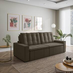 O Sofá Cama Palmeira MadeiraMadeira é a solução perfeita para quem tem pouco espaço disponível. Com ele você poderá acomodar suas visitas com conforto e praticidade. Produzido em madeira maciça de eucalipto, suporta até 400kg. Depois nos conte como foi a experiência de compra e como ficou seu ambiente nos comentários! Acompanha Almofadas extras: Não Almofada do assento: Fixa Almofada do encosto: Removível Altura do assento até o chão: 48 Altura do Encosto: 58 Altura dos Pés: 3 Ambiente Principal: Sala de Estar Complexidade da Montagem: Baixa: pode ser montado por uma pessoa sozinha Cor: Grafite Cor do Produto: Grafite Densidade do Assento: D-23 Densidade do Encosto: Camadas de Densidades Diferentes Enchimento do Assento: Espuma Enchimento do Encosto: Fibra Siliconada Estilo de Braço: Braços Quadrados Firmeza do Assento: Médio Informações Complementares: Densidade Braço D19. Enchimento do encosto: fibra siliconada com flocos de espuma envolvidas com manta siliconada. Itens Inclusos: 1 Sofá, Kit Ferragens e Manual de Montagem Linha ou Coleção: Palmeira Manual de Montagem e Instalação: https://product-hub-prd.madeiramadeira.com.br/879727/documents/a5a551c3-8ee8-4b32-895a-2ea938b4998dpalmeira240260280bracoreto.pdf Material dos Pés: Polimero Modelo: Retrátil e Reclinável Necessita Montagem: Sim Nível de Conforto: Macio Origem do Produto: Nacional Peso: 93 Pet Friendly: Não Possui Entrada USB: Não Possui Percintas Elásticas: Sim Possui Pés: 08 Possui Rodízio: Sim Profundidade Quando Estendido: 148 Recomendações de Uso, Manutenção e Limpeza: Evitar exposição direta à luz solar, limpar com escova macia e aspirar o pó semanalmente, não utilizar produtos químicos, removedores, alvejantes, etc. Evite exercer pressão excessiva sobre determinada partes do estofado, não utilizar para limpeza equipamentos a vapor de água. Resistente à Chuva: Não Revestimento do Braço: Veludo Rodízio com Trava: Não Sistema de Montagem: Parafusos e Engates Tecido Predominante: Veludo Tipo de Encosto: Regulável Tipo de Mola: Molas Bonnel