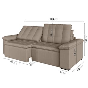 O Sofá Cama Palmeira MadeiraMadeira é a solução perfeita para quem tem pouco espaço disponível. Com ele você poderá acomodar suas visitas com conforto e praticidade. Produzido em madeira maciça de eucalipto, suporta até 400kg. Depois nos conte como foi a experiência de compra e como ficou seu ambiente nos comentários! Acompanha Almofadas extras: Não Almofada do assento: Fixa Almofada do encosto: Removível Altura do assento até o chão: 48 Altura do Encosto: 58 Altura dos Pés: 3 Ambiente Principal: Sala de Estar Complexidade da Montagem: Baixa: pode ser montado por uma pessoa sozinha Cor: Castor Cor do Produto: Castor Densidade do Assento: D-23 Densidade do Encosto: Camadas de Densidades Diferentes Enchimento do Assento: Espuma Enchimento do Encosto: Fibra Siliconada Estilo de Braço: Braços Quadrados Firmeza do Assento: Médio Informações Complementares: Densidade Braço D19. Enchimento do encosto: fibra siliconada com flocos de espuma envolvidas com manta siliconada. Itens Inclusos: 1 Sofá, Kit Ferragens e Manual de Montagem Linha ou Coleção: Palmeira Manual de Montagem e Instalação: https://product-hub-prd.madeiramadeira.com.br/879714/documents/9cdd0899-6753-4a1c-adeb-41d64be06cdbanualsofapalmeira240260280.pdf Material dos Pés: Polimero Modelo: Retrátil e Reclinável Necessita Montagem: Sim Nível de Conforto: Macio Origem do Produto: Nacional Peso: 93 Pet Friendly: Não Possui Entrada USB: Não Possui Percintas Elásticas: Sim Possui Pés: 08 Possui Rodízio: Sim Profundidade Quando Estendido: 148 Recomendações de Uso, Manutenção e Limpeza: Evitar exposição direta à luz solar, limpar com escova macia e aspirar o pó semanalmente, não utilizar produtos químicos, removedores, alvejantes, etc. Evite exercer pressão excessiva sobre determinada partes do estofado, não utilizar para limpeza equipamentos a vapor de água. Resistente à Chuva: Não Revestimento do Braço: Veludo Rodízio com Trava: Não Sistema de Montagem: Parafusos e Engates Tecido Predominante: Veludo Tipo de Encosto: Regulável Tipo de Mola: Molas Bonnel