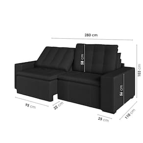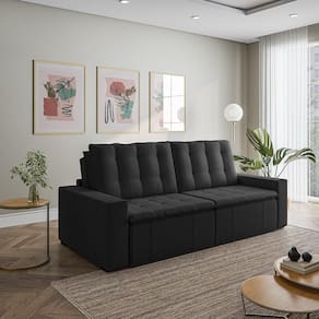 Sofá Cama Retrátil e Reclinável 4 Lugares 280cm Veludo Palmeira Cabecasa MadeiraMadeira Preto