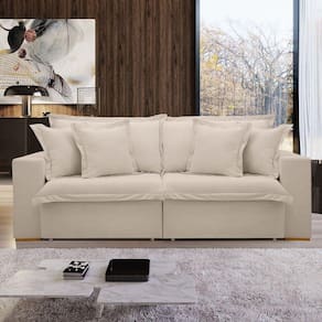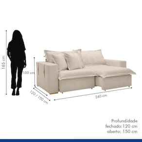 O Sofá Arizona é a solução ideal para quem busca praticidade e conforto. Com um design moderno e elegante. Sua principal característica é a capacidade de se transformar facilmente em uma cama espaçosa, oferecendo versatilidade para receber visitas inesperadas ou para momentos de descanso extra. Renove sua sala de estar com o Sofá Arizona e aproveite o melhor do conforto e da funcionalidade em um só lugar. Acompanha Almofadas extras: Sim Almofada do assento: Fixa Almofada do encosto: Removível Altura do assento até o chão: 50 Altura do Braço: 63 Altura do Encosto: 50 Altura dos Pés: 2.5 Ambiente Principal: Sala de Estar Complexidade da Montagem: Baixa: pode ser montado por uma pessoa sozinha Cor: Bege Cor do Produto: Bege Densidade do Assento: D-28 Densidade do Encosto: D-18 Enchimento do Assento: Espuma Enchimento do Braço: Espuma D-28 Enchimento do Encosto: Fibra Siliconada Firmeza do Assento: Firme Itens Inclusos: 1 Sofá e 4 Almofadas Decorativas Linha ou Coleção: Arizona Material dos Pés: Madeira Medida como Cama (A x L x P): 100cmx200cmx132cm Modelo: Retrátil e Reclinável Necessita Montagem: Sim Origem do Produto: Nacional Peso: 94.2 Pet Friendly: Não Possui Baú: Não Possui Percintas Elásticas: Sim Possui Pés: 08 Possui Rodízio: Sim Profundidade Quando Estendido: 150 Quantidade de Itens: 1 Reclinável: Sim Recomendações de Uso, Manutenção e Limpeza: Para limpar, utilize pano seco ou papel absorvente. Não armazenar em local úmido. Não usar produtos químicos como detergente, cloro, alvejantes entre outros. Evitar exposição a luz solar direta por longos períodos. Revestimento do Assento: Boucle Revestimento do Braço: Boucle Revestimento do Encosto: Boucle Rodízio com Trava: Não Sistema de Montagem: Encaixe Tecido Predominante: Não Possui Tipo de Assento: Fixo Tipo de Encosto: Regulável Tipo de Mola: Molas Bonnel Marca: Celflex