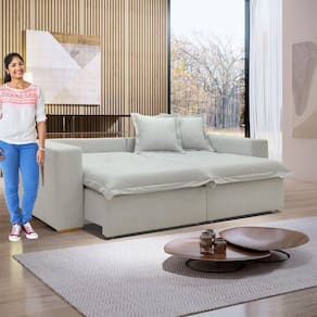 O Sofá Arizona é a solução ideal para quem busca praticidade e conforto. Com um design moderno e elegante. Sua principal característica é a capacidade de se transformar facilmente em uma cama espaçosa, oferecendo versatilidade para receber visitas inesperadas ou para momentos de descanso extra. Renove sua sala de estar com o Sofá Arizona e aproveite o melhor do conforto e da funcionalidade em um só lugar. Acompanha Almofadas extras: Sim Almofada do assento: Fixa Almofada do encosto: Removível Altura do assento até o chão: 50 Altura do Braço: 63 Altura do Encosto: 50 Altura dos Pés: 2.5 Ambiente Principal: Sala de Estar Complexidade da Montagem: Baixa: pode ser montado por uma pessoa sozinha Cor: Gelo Cor do Produto: Gelo Densidade do Assento: D-28 Densidade do Encosto: D-18 Enchimento do Assento: Espuma Enchimento do Braço: Espuma D-28 Enchimento do Encosto: Fibra Siliconada Firmeza do Assento: Firme Itens Inclusos: 1 Sofá e 4 Almofadas Decorativas Linha ou Coleção: Arizona Material dos Pés: Madeira Medida como Cama (A x L x P): 100cmx200cmx132cm Modelo: Retrátil e Reclinável Necessita Montagem: Sim Origem do Produto: Nacional Peso: 94.2 Pet Friendly: Não Possui Baú: Não Possui Percintas Elásticas: Sim Possui Pés: 08 Possui Rodízio: Sim Profundidade Quando Estendido: 150 Quantidade de Itens: 1 Reclinável: Sim Recomendações de Uso, Manutenção e Limpeza: Para limpar, utilize pano seco ou papel absorvente. Não armazenar em local úmido. Não usar produtos químicos como detergente, cloro, alvejantes entre outros. Evitar exposição a luz solar direta por longos períodos. Revestimento do Assento: Boucle Revestimento do Braço: Boucle Revestimento do Encosto: Boucle Rodízio com Trava: Não Sistema de Montagem: Encaixe Tecido Predominante: Não Possui Tipo de Assento: Fixo Tipo de Encosto: Regulável Tipo de Mola: Molas Bonnel Marca: Celflex