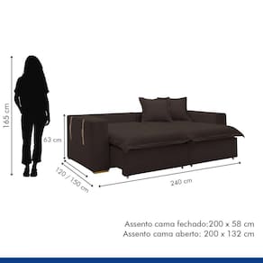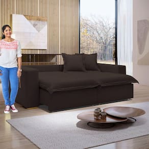 O Sofá Arizona é a solução ideal para quem busca praticidade e conforto. Com um design moderno e elegante. Sua principal característica é a capacidade de se transformar facilmente em uma cama espaçosa, oferecendo versatilidade para receber visitas inesperadas ou para momentos de descanso extra. Renove sua sala de estar com o Sofá Arizona e aproveite o melhor do conforto e da funcionalidade em um só lugar. Acompanha Almofadas extras: Sim Almofada do assento: Fixa Almofada do encosto: Removível Altura do assento até o chão: 50 Altura do Braço: 63 Altura do Encosto: 50 Altura dos Pés: 2.5 Ambiente Principal: Sala de Estar Complexidade da Montagem: Baixa: pode ser montado por uma pessoa sozinha Cor: Marrom Cor do Produto: Marrom Densidade do Assento: D-28 Densidade do Encosto: D-18 Enchimento do Assento: Espuma Enchimento do Braço: Espuma D-28 Enchimento do Encosto: Fibra Siliconada Firmeza do Assento: Firme Itens Inclusos: 1 Sofá e 4 Almofadas Decorativas Linha ou Coleção: Arizona Material dos Pés: Madeira Medida como Cama (A x L x P): 100cmx200cmx132cm Modelo: Retrátil e Reclinável Necessita Montagem: Sim Origem do Produto: Nacional Peso: 94.2 Pet Friendly: Não Possui Baú: Não Possui Percintas Elásticas: Sim Possui Pés: 08 Possui Rodízio: Sim Profundidade Quando Estendido: 150 Quantidade de Itens: 1 Reclinável: Sim Recomendações de Uso, Manutenção e Limpeza: Para limpar, utilize pano seco ou papel absorvente. Não armazenar em local úmido. Não usar produtos químicos como detergente, cloro, alvejantes entre outros. Evitar exposição a luz solar direta por longos períodos. Revestimento do Assento: Boucle Revestimento do Braço: Boucle Revestimento do Encosto: Veludo Rodízio com Trava: Não Sistema de Montagem: Encaixe Tecido Predominante: Veludo Tipo de Assento: Fixo Tipo de Encosto: Regulável Tipo de Mola: Molas Bonnel Marca: Celflex