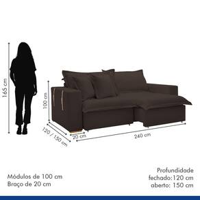 Sofá Cama Retrátil e Reclinável Arizona Veludo Marrom 2,40M