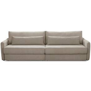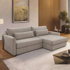 Características: Estrutura em madeira de eucalipto devidamente tratada e aparelhada com reforços e cantoneiras e chapas em MDF. Revestimento em tecido Linho e Couríssimo de alta qualidade na tonalidade Bege Claro e Café. Encosto reclinável por meio de catraca metálica de 5 estágios, com almofada solta composta por 100% de fibra siliconada. Assento retrátil com tubo, composto por espuma D-26, molas espirais e molas ensacadas. Percintas elásticas no encosto e no assento para maior resistência e durabilidade. Braços tapeçados com espuma D-20. Pés em poliuretano e rodízios de silicone. Sofá com design moderno, bipartido com dois assentos. Peso suportado: até 120 kg por assento.