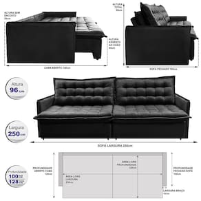 Um modelo com design moderno e sofisticado, o Sofá Cama Retrátil e Reclinável Versátil é um modelo 2 em 1, podendo ser usado como sofá, sendo espaçoso e confortável ou como cama, onde vira uma bela cama de casal, ganhando muito espaço e comodidade para você. Além disso, o sofá cama conta com um Pillow Top, dando ainda mais conforto, sustentação e qualidade para você aproveitar seu filme ou maratonar sua série favorita.