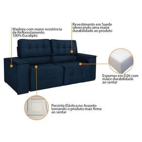 Sofá Cama Retrátil Sala Vicenza Vicenza 210cm Suede Cor Azul Marinho