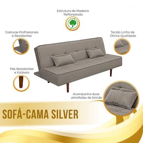 Sofá Cama Silver 2 Estágios 3 Lugares - Linho - Bege Claro