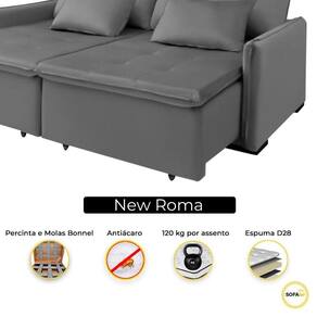 O modelo New Roma se destaca pela sua versatilidade. Ele se transforma facilmente em uma Sofá Cama, proporcionando uma opção extra de conforto e praticidade.
