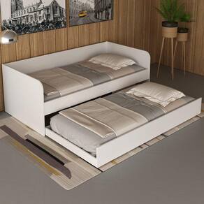 Sofa Cama Solteiro Com Auxiliar CM8032, é a escolha certa para você que busca conforto e bem-estar, tornando o seu ambiente muito mais elegante e moderno. Estrutura em MDP de 15mm, proporcionando maior durabilidade e resistência a peça, contando com acabamento revestido em pintura UV (semi - brilho). Composto por 4 rodízios e acompanha sapatas plásticas, móvel multifuncional pode ser utilizado como sofá cama e dispõe de uma cama auxiliar na parte inferior, ideal para colchão solteiro de 90,5 x 190 cm. Suportando até 130kg o sofá cama e 130kg a cama auxiliar. Possui design diferenciado, que oferece sofisticação, versatilidade e charme ao seu ambiente. Este móvel chegará na sua casa separado em 2 volumes.