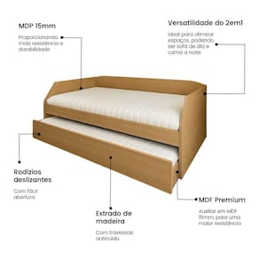 AS IMAGENS SÃO MERAMENTE ILUSTRATIVAS E PODEM SOFRER VARIAÇÕES DE COR E PEQUENOS DETALHES DE ACORDO COM O SEU MONITOR, ILUMINAÇÃO DO AMBIENTE E ATÉ MESMO A SUA PERCEPÇÃO VISUAL.Sofà Cama Solteiro Duo com Cama Auxiliar em Mdf ReforÃado 15mm Amendoa
