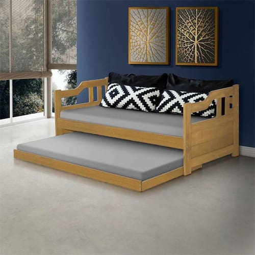 AS IMAGENS SÃO MERAMENTE ILUSTRATIVAS E PODEM SOFRER VARIAÇÕES DE COR E PEQUENOS DETALHES DE ACORDO COM O SEU MONITOR, ILUMINAÇÃO DO AMBIENTE E ATÉ MESMO A SUA PERCEPÇÃO VISUAL.Sofà Cama Solteiro Madeira com Cama Auxiliar e 2 ColchÃes Texas - Imbuia
