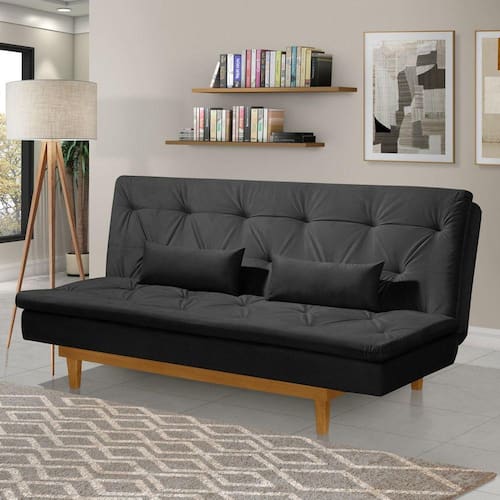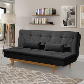 Esse produto foi projetado e desenvolvido para oferecer 2 opções em um mesmo produto, seja como Sofá ou seja como Cama. Quando utilizado como Sofá acomoda confortavelmente até 3 pessoas sentadas. Quando utilizado como Cama pode ser utilizado por 2 pessoas se tornando assim em uma cama de casal. Esse produto é fabricado com uma estrutura em madeira 100% reflorestada, Espuma D26, Percinta elástica, Molas Espiral, Tecido TNT 100% poliéster. Possui base e pés em madeira maciça com acabamento na cor Castanho. O produto acompanha 2 almofadas que podem ser utilizadas como travesseiros. Acompanha Almofadas extras: 02 Almofada do assento: Fixa Almofada do encosto: Fixa Altura do assento até o chão: 43 cm Altura do Encosto: 47 cm Altura dos Pés: 12 cm Ambiente Principal: Sala de Estar Complexidade da Montagem: Baixa: pode ser montado por uma pessoa sozinha Cor: Preto Cor do Produto: Preto Densidade do Assento: D-26 Densidade do Encosto: D-26 Enchimento do Assento: Espuma Enchimento do Braço: Enchimento do Encosto: Espuma Estilo de Braço: Sem Braços Firmeza do Assento: Macio Informações Complementares: Acomoda 3 pessoas sentadas ou 2 deitadas Itens Inclusos: 1 Sofá, 4 Pés e Manual de Montagem Largura do Sofá Maior: cm Linha ou Coleção: Tokio Manual de Especificação Técnica: https://cdn2.madeiramadeira.com.br/atributo/imperio-estofados/551817-garantia-imp-rio-estofados.pdf Manual de Montagem e Instalação: Material dos Pés: Madeira Medida como Cama (A x L x P): 43cm x 125cm x 190cm Modelo: Somente Reclinável Necessita Montagem: Sim Origem do Produto: Nacional Peso: 48 kg Pet Friendly: Não Possui Baú: Possui Percintas Elásticas: Sim Possui Pés: 04 Possui Rodízio: Não Profundidade Quando Estendido: cm Reclinável: Sim Recomendações de Uso, Manutenção e Limpeza: Não utilizar produtos químicos, limpar apenas com pano levemente umedecido com água. Revestimento do Assento: Suede Aveludado Revestimento do Braço: Revestimento do Encosto: Suede Aveludado Rodízio com Trava: Não Sistema de Montagem: Somente rosquear os pés Tecido Predominante: Suede Tipo de Assento: Fixo Tipo de Encosto: Regulável Tipo de Mola: Molas Bonnel