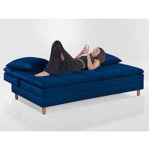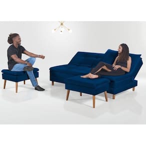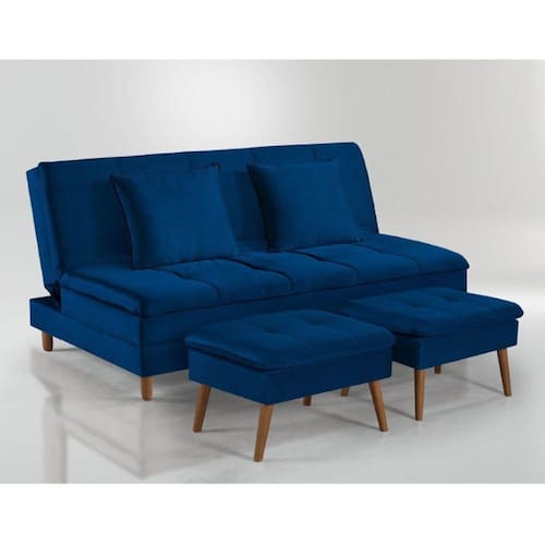 Sofá Cama Vegas Com 2 Puffs Talento Móveis Azul