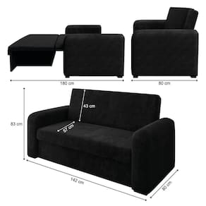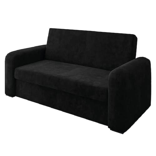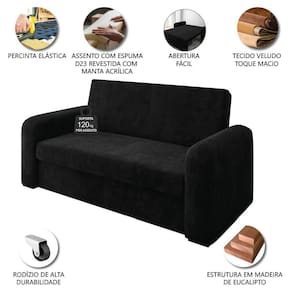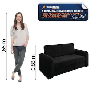 Sofá Cama Versátil 2 Lugares Veludo Selmer Preto Para quem deseja somar conforto e praticidade em sua sala, a opção ideal é o Sofá Cama Versátil! Ele possui um design moderno e confortável, feito com madeiras reflorestadas e revestido com tecido veludo de toque macio, acrescentando estilo ao ambiente e garantindo um sofá confortável que também pode ser como cama para seu descanso. Confeccionado com materiais de qualidade, trazendo resistência e durabilidade a vida útil do produto! MEDIDAS: [ A ] = 83 cm [ L ] = 142 cm [ P ] = 80 cm (aberto: 180 cm) PESO SUPORTADO: 120kg por pessoa PESO: 80kg MODELO: Sofá Cama 2 Lugares Veludo MARCA: Selmer DESIGN: Moderno LUGARES: 2 ESTRUTURA: Madeira de reflorestamento (Eucaliptos e Pinus) TECIDO: Veludo ASSENTO: com Percinta Elástica DENSIDADE DO ASSENTO: D23 DENSIDADE DOS BRAÇOS: D18 QUANTIDADE DE PÉS: 4 GARANTIA DO FABRICANTE: 3 Meses