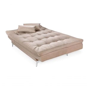 Este sofá cama acomoda tranquilamente 3 pessoas sentadas e duas deitadas, ele pode ser até 5 posições diferentes. Espuma de alto conforto com a densidade tanto no assento como no encosto D26, com percintas elásticas e molas bonel, pés e base em madeira maciça e acompanha duas almofadas que pode ser como travesseiro.
