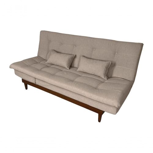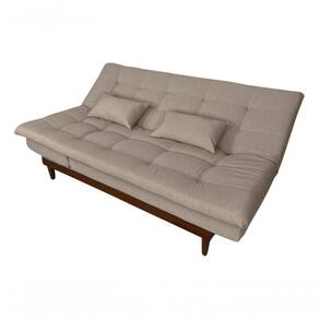 Este sofá cama acomoda tranquilamente 3 pessoas sentadas e duas deitadas, ele pode ser até 5 posições diferentes. Espuma de alto conforto com a densidade tanto no assento como no encosto D26, com percintas elásticas e molas bonel, pés e base em madeira maciça e acompanha duas almofadas que pode ser como travesseiro.
