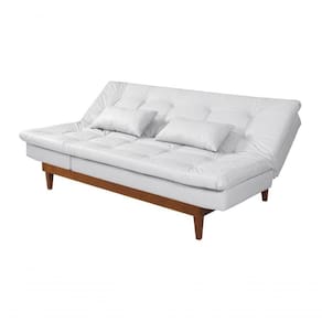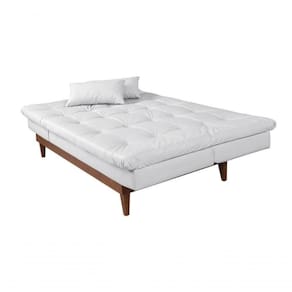 Este sofá cama acomoda tranquilamente 3 pessoas sentadas e duas deitadas, ele pode ser até 5 posições diferentes. Espuma de alto conforto com a densidade tanto no assento como no encosto D26, com percintas elásticas e molas bonel, pés e base em madeira maciça e acompanha duas almofadas que pode ser como travesseiro.