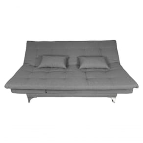 Este sofá cama acomoda tranquilamente 3 pessoas sentadas e duas deitadas, ele pode ser até 5 posições diferentes. Espuma de alto conforto com a densidade tanto no assento como no encosto D26, com percintas elásticas e molas bonel, pés e base em madeira maciça e acompanha duas almofadas que pode ser como travesseiro.