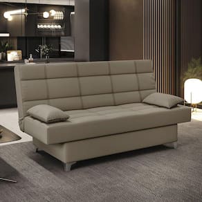 A Bicama Virgínia Plus possui sistema de abrir e fechar na catraca de metal, possibilitando acomodar até 02 pessoas para dormir. Serve também como estofado para sala de TV ou visitas, Pés em PVC da cor alumínio com design moderno e arrojado que dá um toque de charme no produto. Acompanha Almofadas extras: 02 Almofada do assento: Fixa Almofada do encosto: Fixa Altura do assento até o chão: 50 cm Altura do Encosto: 51 cm Altura dos Pés: 9 cm Ambiente Principal: Sala de Estar Cor: Bege Cor do Produto: Bege Densidade do Assento: D-26 Densidade do Encosto: D-26 Enchimento do Assento: Espuma Enchimento do Encosto: Espuma Estilo de Braço: Sem Braços Firmeza do Assento: Macio Itens Inclusos: 01 Sofá Linha ou Coleção: Sofá Cama Manual de Montagem e Instalação: https://product-hub-prd.madeiramadeira.com.br/871560/documents/3fa99873-72d9-4a7d-b0a3-8d1411cf83e21541239bicamavirginiaplus.pdf Material dos Pés: PVC Medida como Cama (A x L x P): 48 X 187 X 115 Modelo: Sofanete Necessita Montagem: Não Origem do Produto: Nacional Peso: 45,4 kg Pet Friendly: Não Possui Baú: Não Possui Percintas Elásticas: Sim Possui Pés: 04 Possui Rodízio: Não Reclinável: Sim Recomendações de Uso, Manutenção e Limpeza: Aspirador de pó ou pano úmido Revestimento do Assento: Suede Revestimento do Encosto: Suede Tecido Predominante: Suede Tipo de Assento: Fixo Tipo de Encosto: Fixo Tipo de Mola: Molas Bonnel Marca: Lumalar Ean: 7909903435069