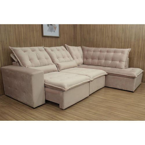 Nosso Sofá de Canto Retrátil Rosa Claro modelo Barcelona é um produto moderno, com design elegante que combina com qualquer ambiente e deixa sua sala ainda mais linda e aconchegante.