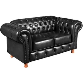 Sofá Chesterfield 2 Lugares Luís XV Vintage Retrô Capitonê Couro Preto