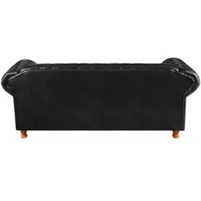 Sofá Chesterfield Luís XV Retrô Capitonê 3 Lugares Couro Preto