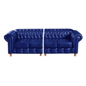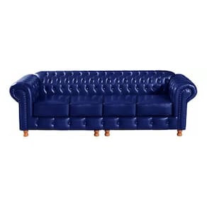 Sofá Chesterfield Luís XV 4 Lugares Vintage Retrô Capitonê Couro Azul